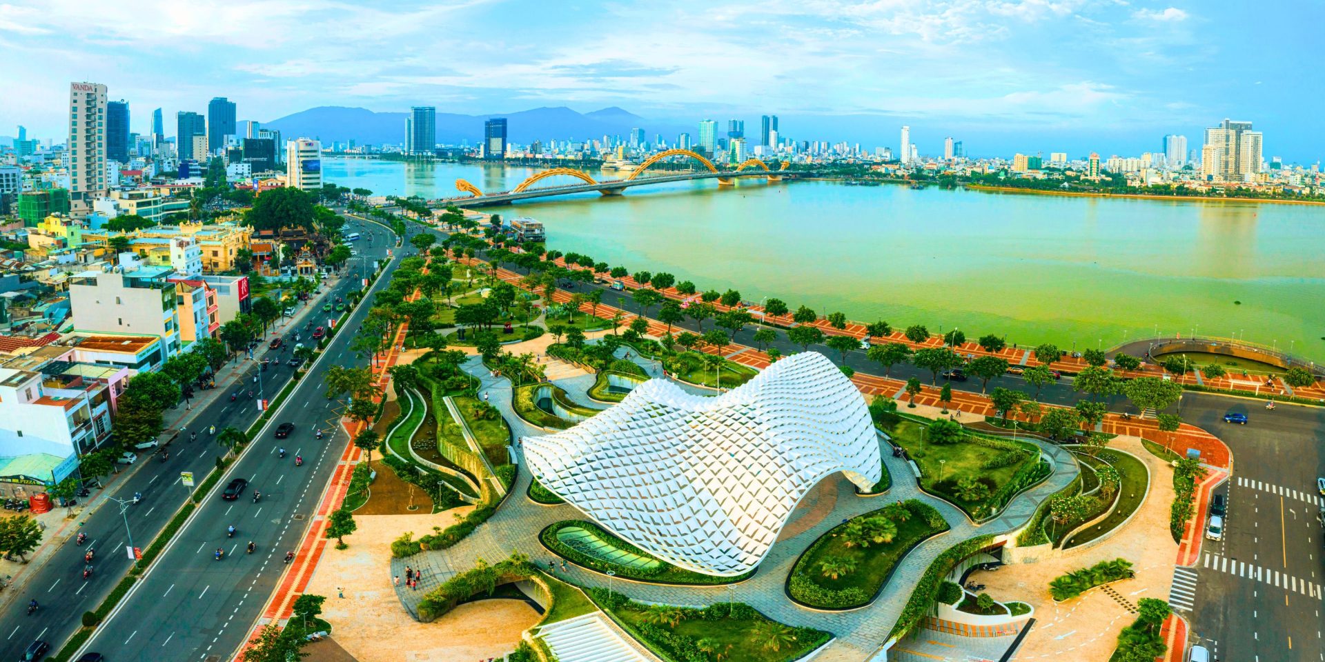 The expanded APEC Sculpture Garden is one of the city’s landmark projects, inaugurated on the occasion of the 25th anniversary of Da Nang becoming a centrally governed city. The centerpiece of the project is the steel dome structure, with the area beneath the dome serving as a community space.