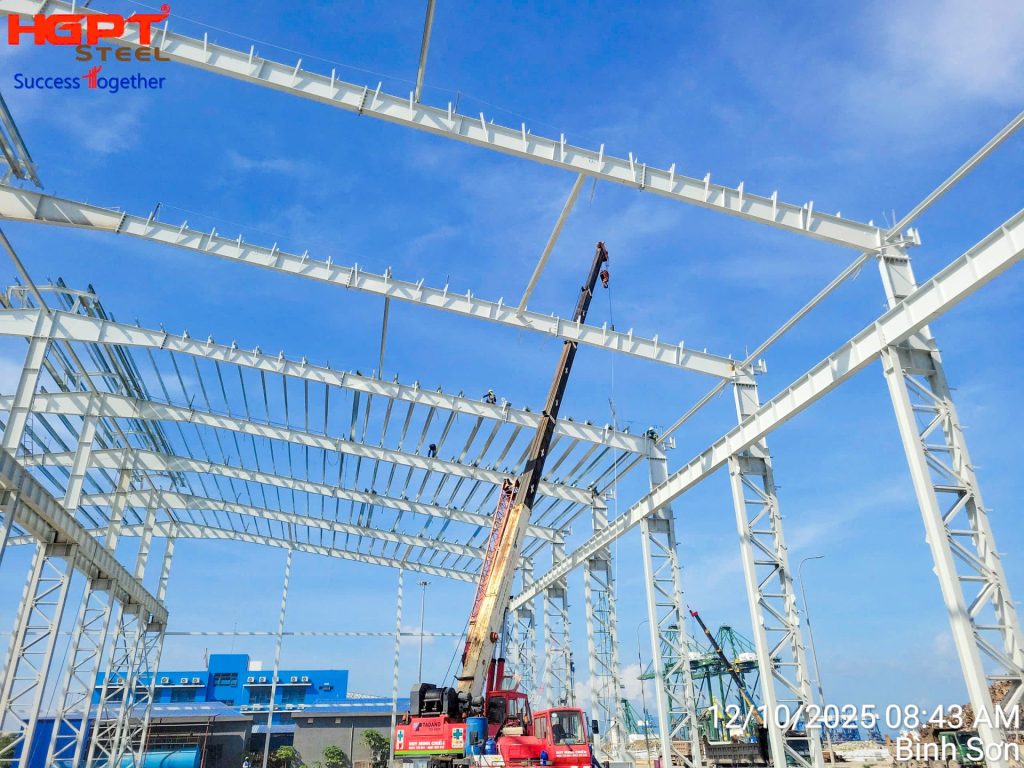 Tiếp nối thành công từ các hạng mục kết cấu thép đã hoàn thiện trước đó tại Hòa Phát Dung Quất 2, đội ngũ HGPT tiếp tục khẳng định năng lực và uy tín cho các công trình công nghiệp và nhà kho Logistics quy mô lớn, có yêu cầu kỹ thuật và chất lượng cao.