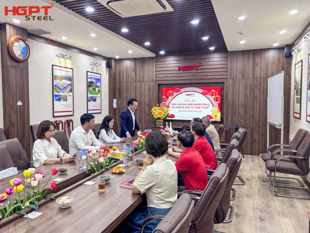Trong không khí chào Xuân 2026, HGPT Steel vinh dự được đón tiếp Đoàn lãnh đạo UBND phường Cẩm Lệ đến thăm, gửi lời chúc Tết và động viên toàn thể Cán bộ công nhân viên Công ty.